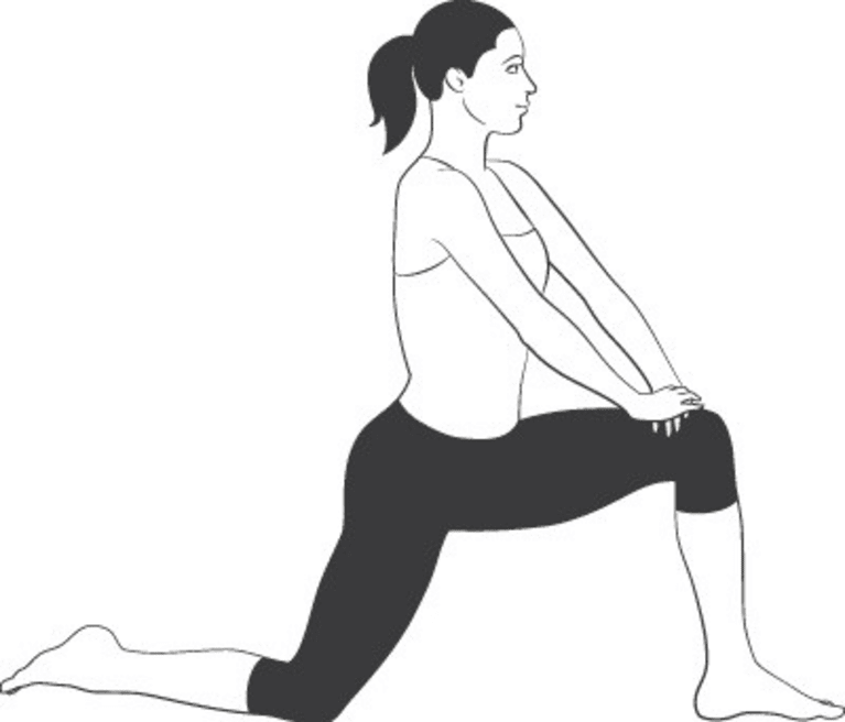 Place both hands on your left thigh and press your hips forward until you feel a good stretch in the hip flexors.