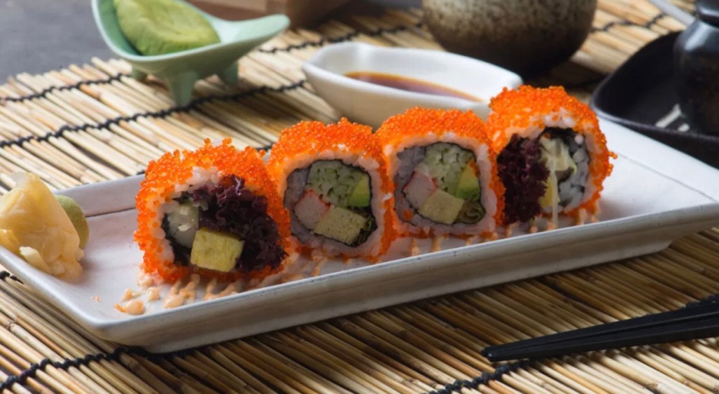 - Top homemade sushi rolls with a few teaspoons of masago.