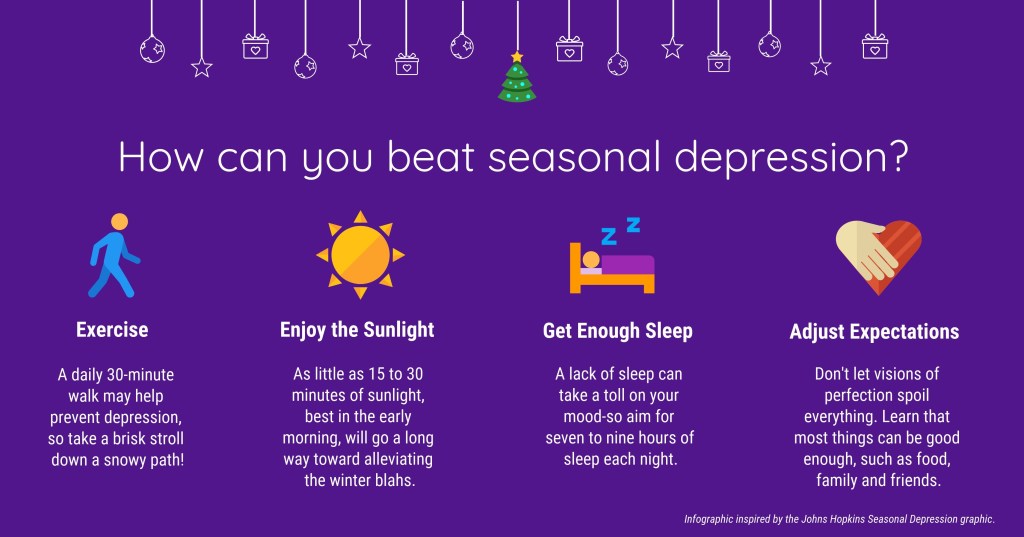 Experts believe that winter depression relates, in part, to a drop in serotonin — a chemical that’s typically produced after exposure to natural light. An increase in melatonin, another hormone linked to winter depression, can leave you feeling more tired and lethargic than usual.