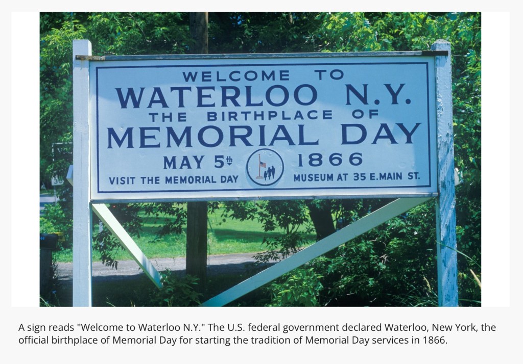 Waterloo—which first celebrated the day on May 5, 1866—was chosen because it hosted an annual, community-wide event, during which businesses closed and residents decorated the graves of soldiers with flowers and flags.